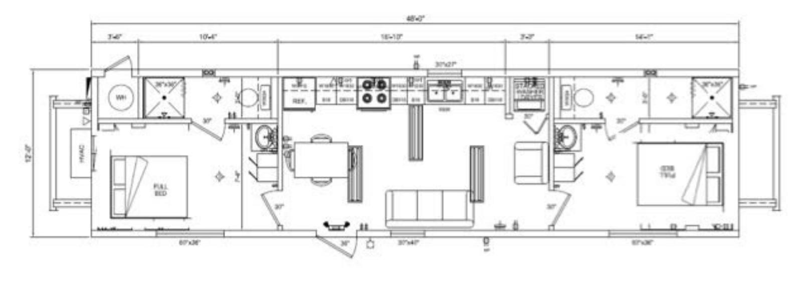 Introducing our versatile 12×48 Two Bed Two Bath Center Kitchen Suite – an exceptional solution in the realm of used home options, perfectly suited for various housing needs. Crafted to cater to the demands of workforce housing, employee housing, migrant housing, and more, these manufactured homes offer unparalleled flexibility and quality.